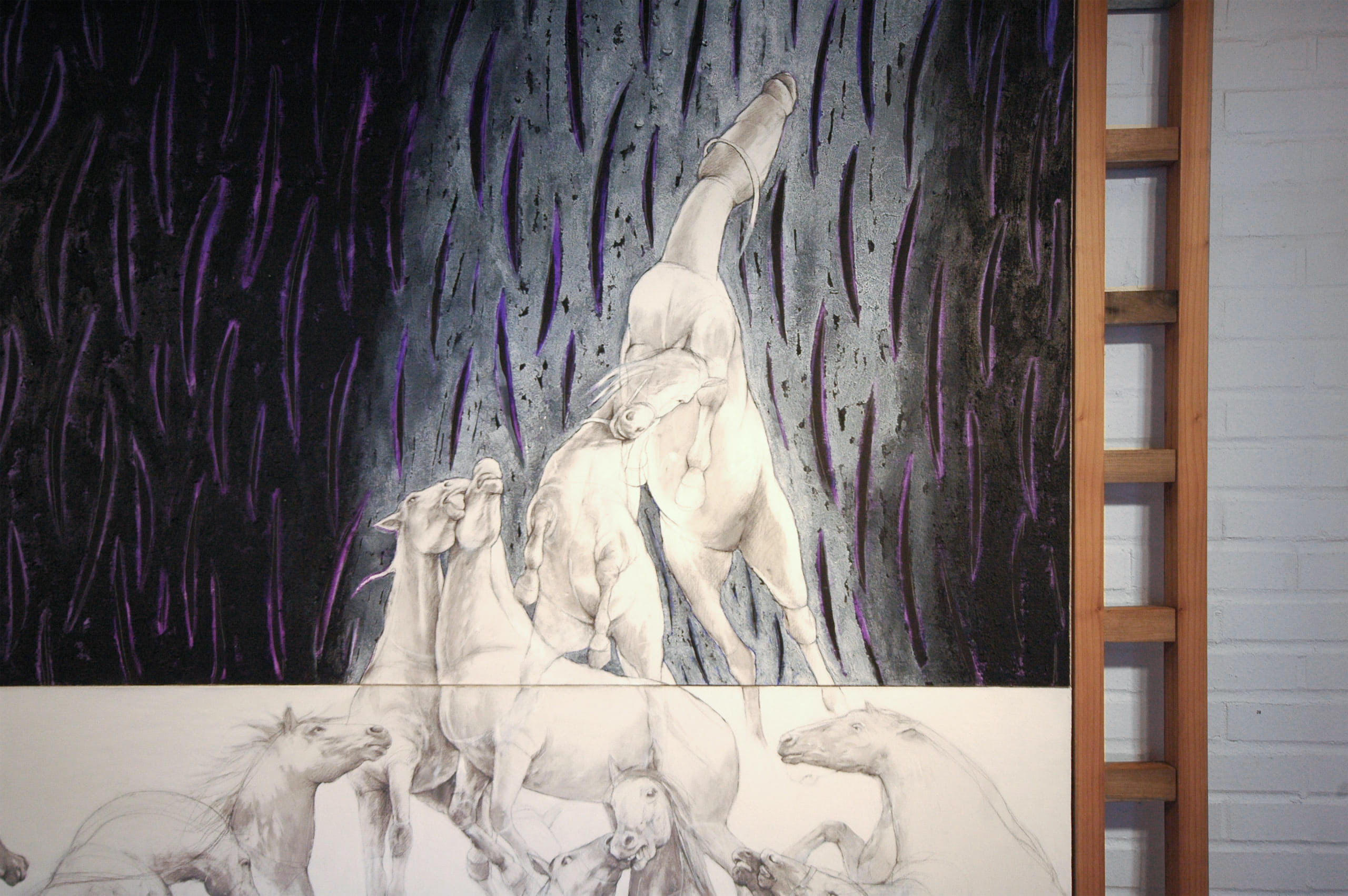 Date: 2005 Material: Acrylic, oil and sand on canvas and ladder of wood Size: 320×240 cm Price: 65 000 SEK