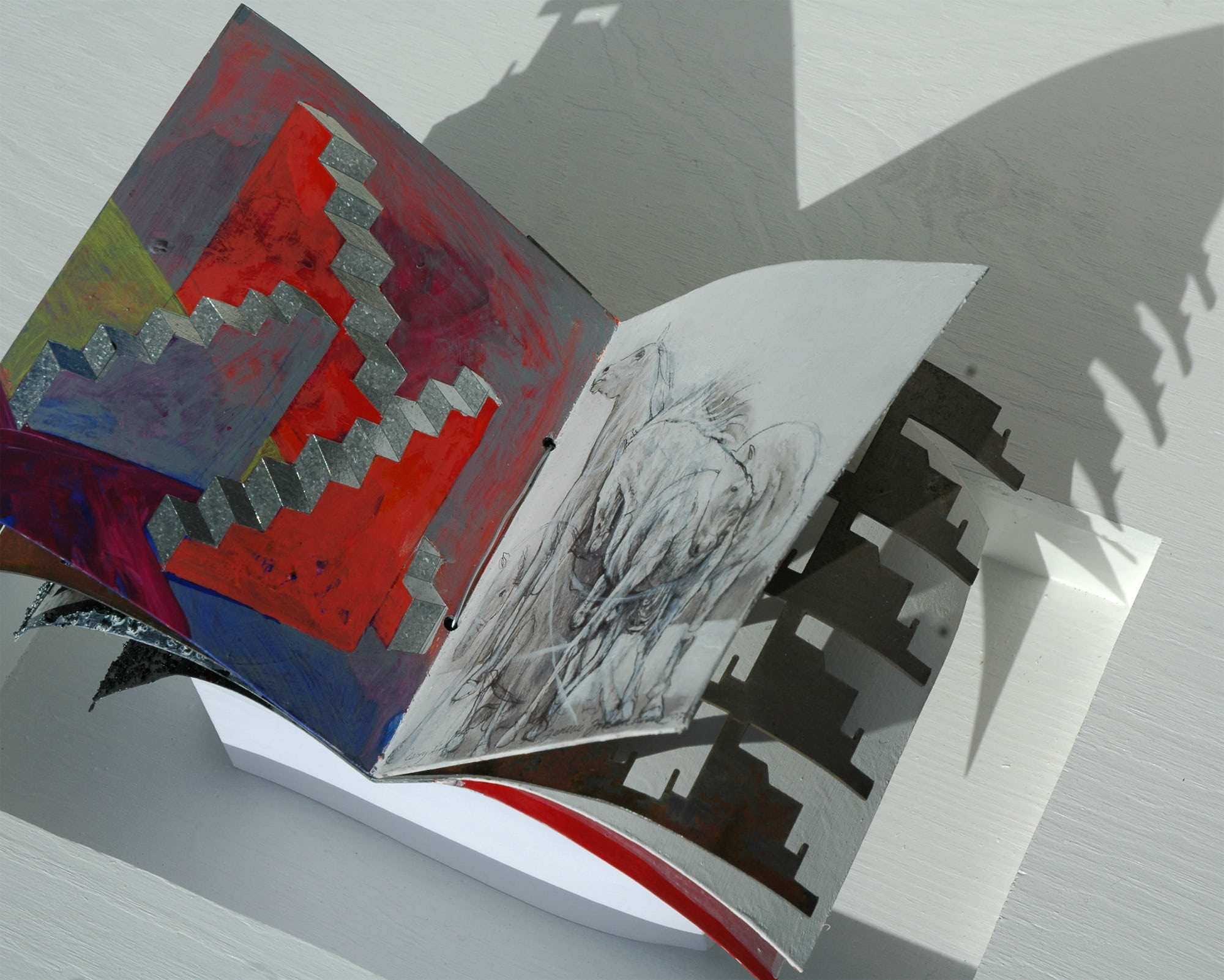 acrylic, oil and pencil on metal